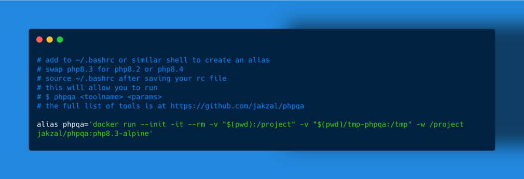 docker run --init -it --rm -v "$(pwd):/project" -v "$(pwd)/tmp-phpqa:/tmp" -w /project jakzal/phpqa phploc ./